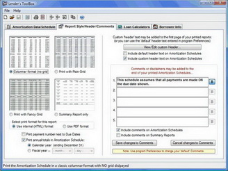 * Print your company name as a page footer on every Amortization schedule