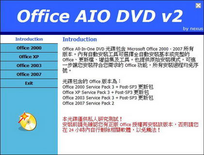 Office All-In-One DVD 光碟包含 Microsoft Office 2000 - 2007 所有版本。內有自