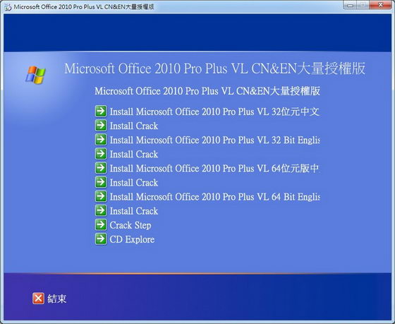 Microsoft Office 2010 Pro Plus VL CN&ENx68x86 繁體中文大量販售破解版 (DVD一片裝)