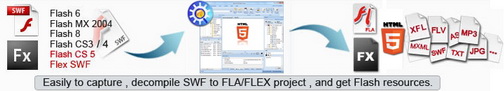將SWF轉換成FLA以及擷取SWF內之元件之專業工具軟體。